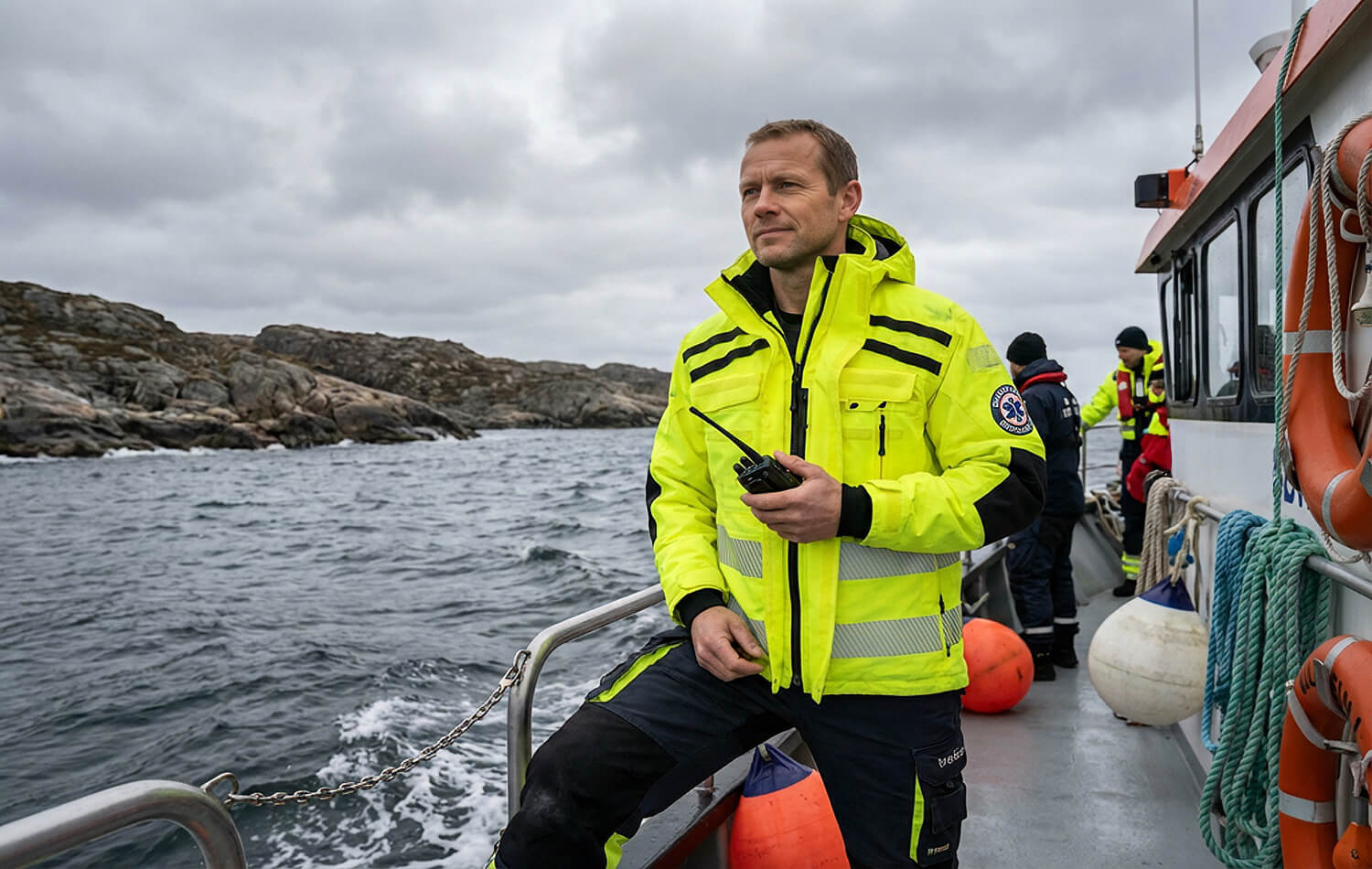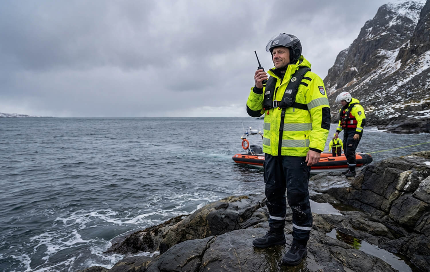 Polarjo jakke med eVent membran har høy vannsøyle og ventilerer godt. Jakken har brede refleksstriper og materialet er mykt og gir god bevegelighet. Hetten er romslig og justerbar og gir god beskyttelse mot vind og vær, i tillegg kan den lett tas av om været tillater det. Praktiske radiohemper på begge skuldre i tillegg til radiolomme på venstre bryst. Jakken har stor innerlomme som gir plass til nettbrett. Cargo lommer med klaff og stikklommer med glidelås og fleecefôr gir rikelig med oppbevaringsmuligheter. Brystlomme utstyrt med karabinkrok for feste av nøkler el. Jakken er justerbar i livet, med skjult stramming i lommer for individuell tilpasning. Lunende pulsvarmere i neopren med tommelfingerhull og velcrostramming rundt håndledd beskytter mot kulde og begrenser vann inngang. Fleece fôr rundt innsiden av krage er lunende og behagelig . Mulighet for å feste patch på rygg, ermer og bryst gjør jakken perfekt i tjeneste eller til fritidsbruk. WP: 28 000mm, MVT: 10 000g/m2/24t